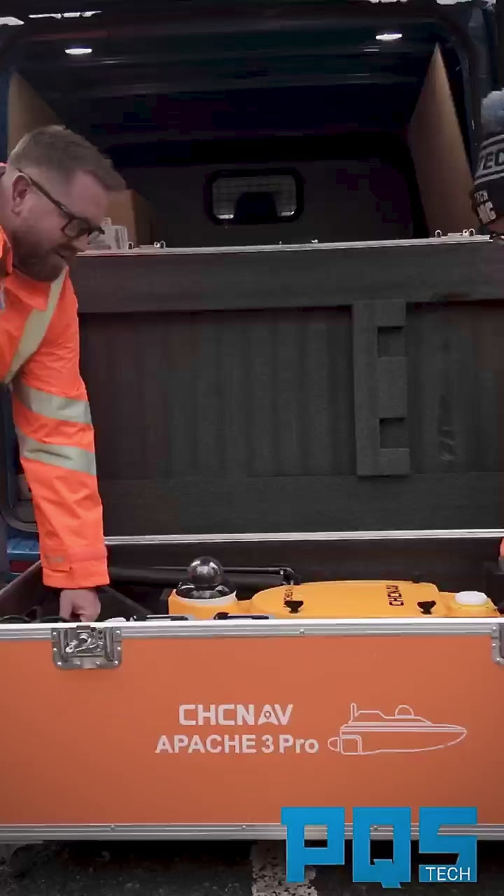 The APACHE 3 Pro is an autonomous USV engineered for high-performance bathymetry in shallow environments. It combines a robust carbon fiber design with a fully integrated single-beam echosounder.